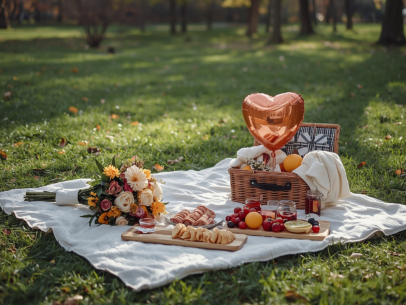 Picnic romántico en casa o al aire libre Un picnic sigue siendo una de las opciones más románticas y económicas. Puedes prepararlo con comida sencilla: fruta, pan, queso, galletas o algo casero.