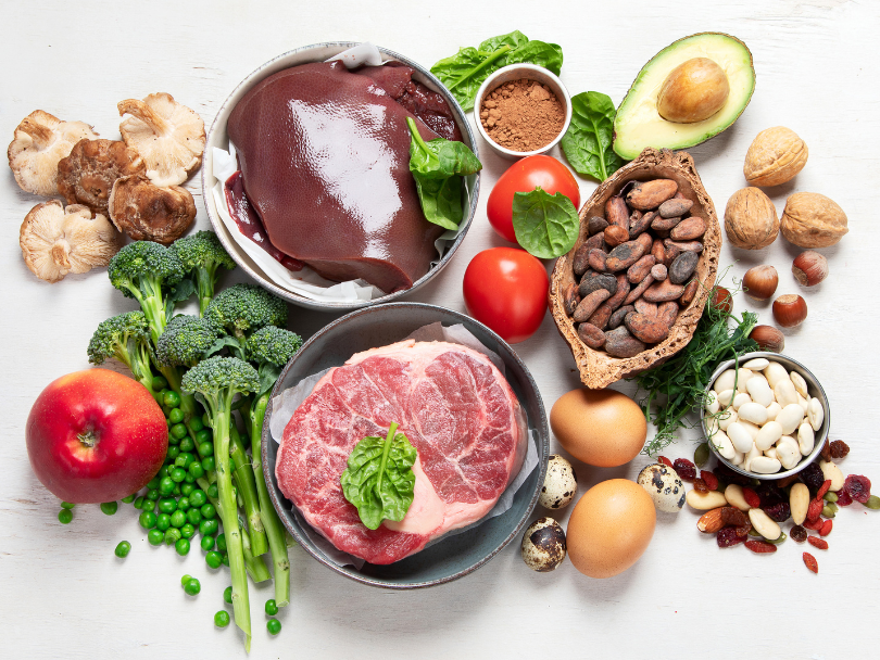 El hierro es fundamental para transportar oxígeno en la sangre. Las mujeres tienen mayor riesgo de deficiencia debido a la menstruación.